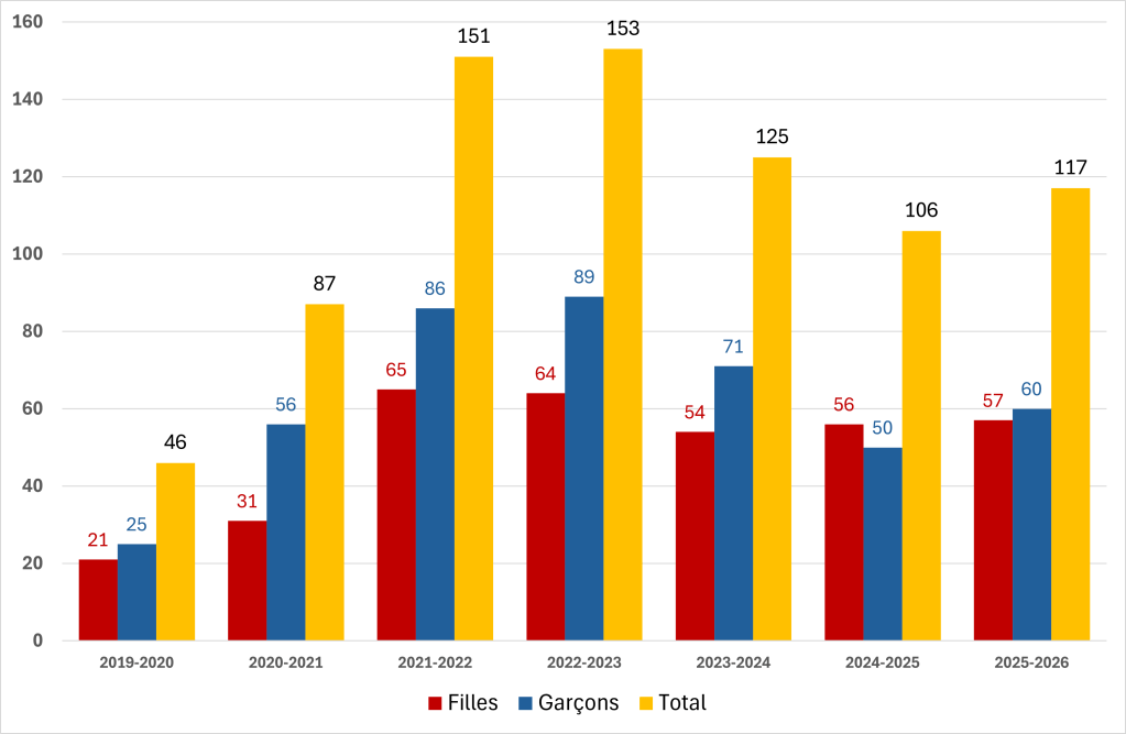 Nombre d’élèves internes chaque année, depuis 2019